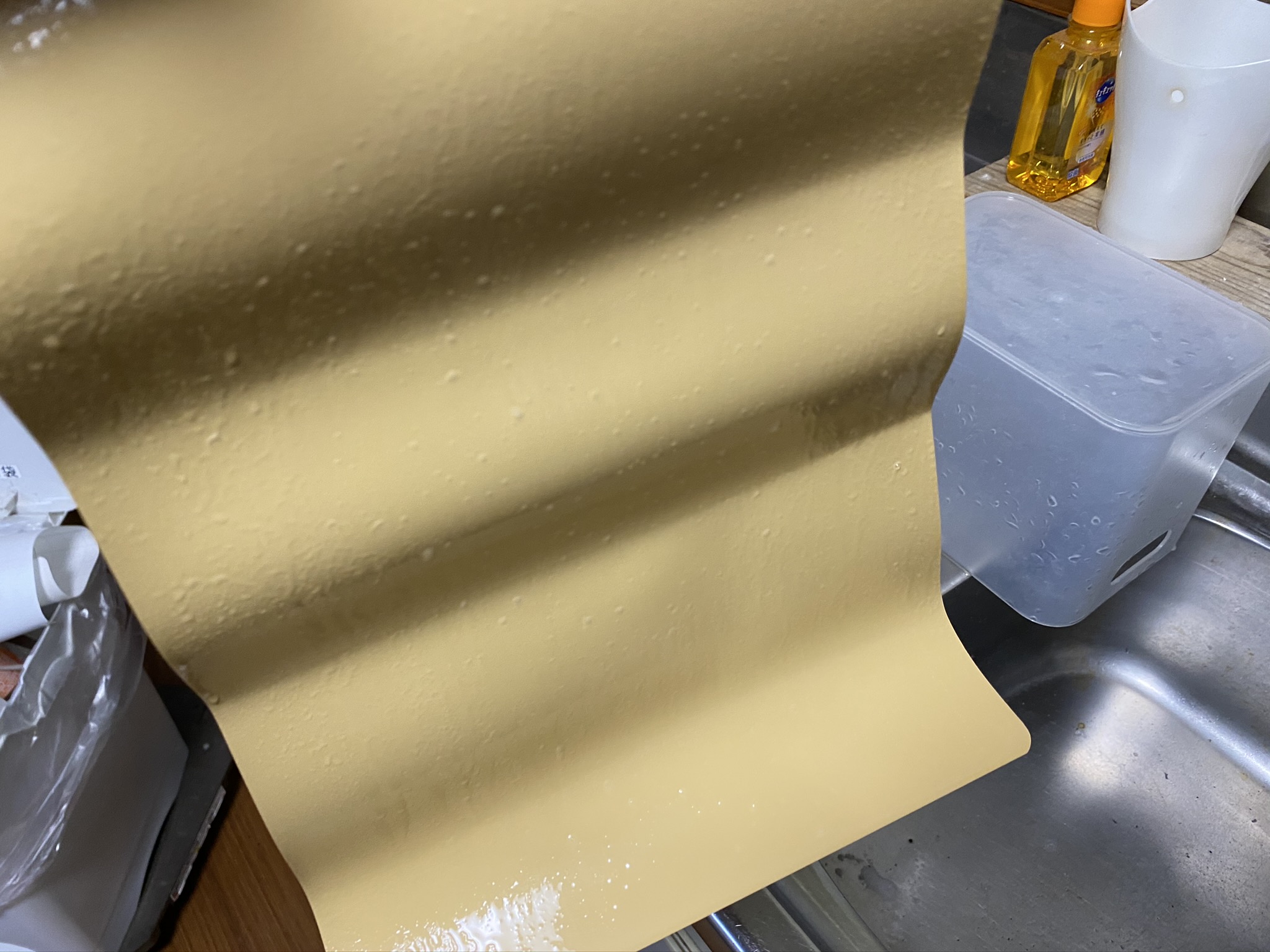 ヘラを使って、中心から外に向けて水分と気泡を出していきます。